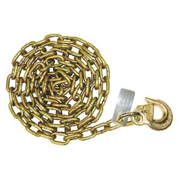 Safety Chain, Attachment Style Latched Sling, Color Yellow, Working Load Break Strength 4,700 lb, Features Heavy Duty Latched Sling Hook On One End, Grade 70, Hook Type Latched Sling Hook, Overall Length 12 ft, Size 5/16 in