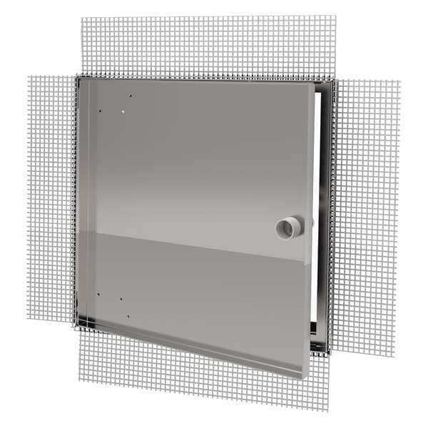 Access Door, Recessed Mount, Uninsulated, Material Steel, Access Door Installation Wall or Ceiling, Door Height 18 in, Door Width 18 in, Rough Opening Height 18 1/4 in, Rough Opening Width 18 1/4 in, Closure Type Cam Latch, Hinge Type Concealed, Finish Powder Coated, Features Plaster Bead Flange, Tile Ready