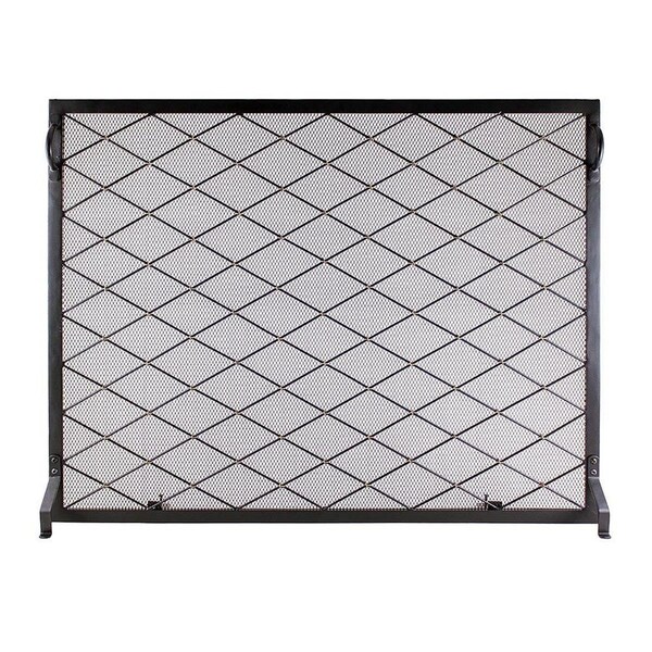 The diamond pattern of the Harlequin Flat Screen is delicately accented with brass wire crosspieces for a touch of contrast with the black wrought iron frame and mesh.Flat screens fit close to the fireplace surround.Providing a decorative accent and safety from flying sparks while minimizing bulk these screens are perfect for a shallower hearth.Specifications.Country of Origin: India.Material: Wrought Iron with Black Powdercoat.Finish: Brass.Assembly Required Y/N: Yes.Dimension: 50in W x 36in H x 7.25in D.Weight: 25 lbs