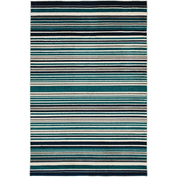 Santee Blues 6 ' 7''x9 ' 6'' Stripe Plush Outdoor Rug