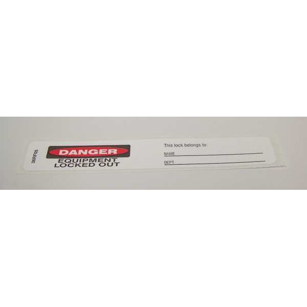 Padlock Label, Horizontal Rectangle, Number of Printed Sides 1, English, Sign Legend Equipment Locked Out This Lock Belongs to: Name ____ Dept ____, Sign Legend Background Color White, Sign Legend Style Text, Sign Legend Character Height 1/16 in, 3/32 in, Package Quantity 25