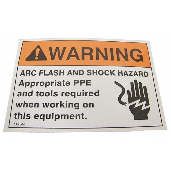 Warning Label, Horizontal Rectangle, Number of Printed Sides 1, English, Sign Legend Arc Flash and Shock Hazard Appropriate PPE and tools required when working on this equipment., Sign Legend Background Color White, Sign Legend Style Symbol and Text, Sign Legend Character Height 7/32 in, Package Quantity 5