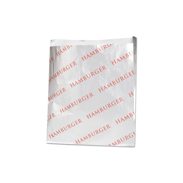 Foil and paper lamination provides heat retention. Fast-loading with easy closure for high-speed operations. Upscale appearance boosts sales and quality image. Hamburger Bags. Application: Foodservice; Materials: Foil; Paper Lamination; Width: 6in; Depth: 0.75in.