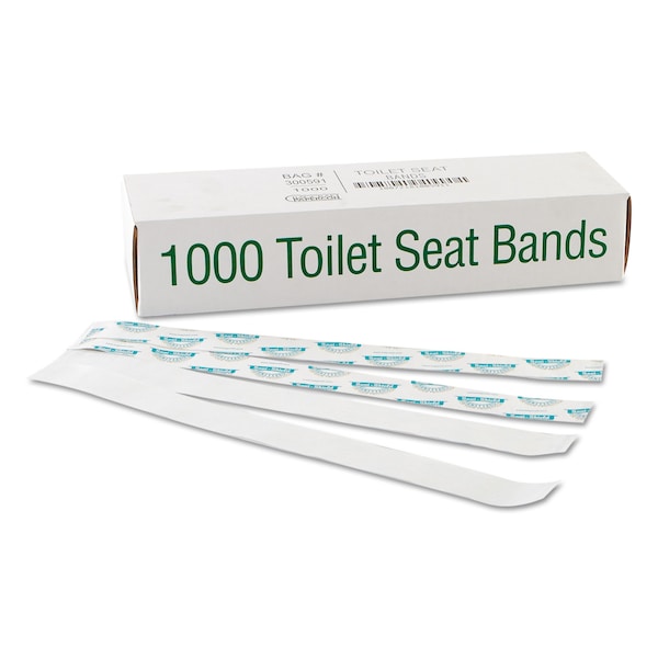 Bagcraft Sani/Shield Printed Toilet Seat Band, Paper, Blue/White, 16" Wide x 1-1/2" Deep, 1000/Carton