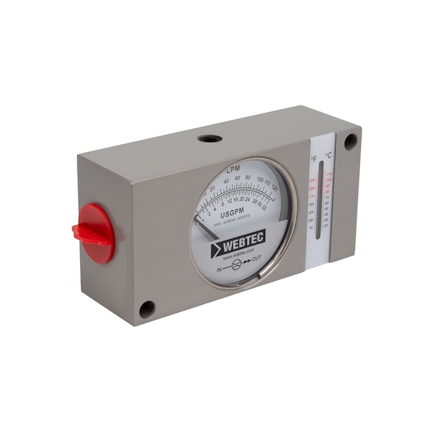 In-Line Flow Indicator w/thermometer, 3/4 NPSF Port, 6000 PSI, 4-48 GPM