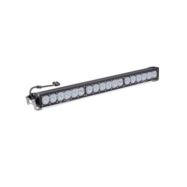 At an impressive 31,910 lumens, the brightest just got up to 30 percent brighter. The OnX6 LED light bar also integrates Baja Designs trademarked High Speed Spot reflector, the same one used by our Team Enlightened racers, to give you the d furthest projecting LED Light Bar on the planet. In addition, the OnX6 LED light bar adopts industry standard sizing and is now compatible with aftermarket mounting systems. This bar is equipped with BMT Battery Management Technology -Elimination Of Flickering at Low Voltage -Added Protection to Vehicle Wiring and Systems -Protection from Dangerous Current SpikesLight Pattern:Wide Driving: BD was the first to develop a pattern specifically for cornering, dust and/or fog conditions. The Wide Driving pattern offers a 42 degree flattened horizontal beam for the ultimate in comfort lighting., Lighting Zones 1 and 2, Baja Designs Features:uService Replaceable Lenses And OpticsClearView All The Light, Right Where You Need It.MoistureBlock Waterproof, Rain Proof, SubmersibleCopperDrive Only LED Driven At 100 percent5000K Daylight Less Driver Fatigue, Natural ColorSpecifications:Lumens:, High, 31,910, Low, 25,450 Utilizing 18 Cree LEDsWattage/Amps:, High, 281W / 21.7A, Low, 225W / 17.1ADimensions: 30 x 4.29 x 2.69inWeight: 11.45 lbsLED Life Expectancy: 49,930 HoursFront Lens: Hard Coated PolycarbonateHousing: Aircraft Grade Aluminum w/Mil-Spec Hard AnodizeBezel: Billet Machined AluminumHardware and Bracket Material: Stainless SteelExceeds MIL-STD810G, Mil-Spec TestingBuilt-In Overvoltage ProtectionIP69K, Waterproof up to 9ft and Pressure WashableIK10 Compliant, Mechanical Impact TestingIncludes:OnX6 30in LED Light Bar Mounting Brackets Hi-Low Dongle
