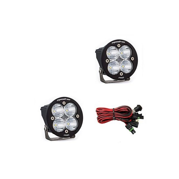 Light up the night with the Squadron-RPro LED lightpairfrom Baja Designs. Do Not let the compact size of these 3 light pods fool you as they will fit almost anywhere you need auxiliary lighting on your truck, Jeep, SUV, UTV and any other vehicle that needs lights. While compact in size the Squadron Pro is equipped with a sleek black gloss aluminum housingwith our 3.5' round bezel thatoutshines the competition through both appearance and performance using next-generation LEDs pushing out 4,095 lumens.uService Replaceable LensesOptics ClearView All The Light, Right Where You Need It MoistureBlock Waterproof, Rain Proof, Submersible CopperDrive Only LED Driven At 100 Percent 5000K Daylight Less Driver Fatigue, Natural ColorLight Pattern-Spot: A longer and narrower 9 degree beam Focus for illumination further down the trail or road. The Spot pattern is designed to be used in conjunction with additional Wide Driving and/or Driving/Combo beam lights., Lighting Zone 4 and 5 Specifications:Lumens: 4,900 Utilizing 4 Cree LEDsWattage/Amps: 42W / 3.5ADimensions: 3.5 x 2.77 x 3.5inWeight: 12 ouncesLED Life Expectancy: 49,930 HoursFront Lens: Hard Coated Poly carbonateHousing: Hard Anodized and Powder Coated Cast AluminumBezel: Billet Machined AluminumHardware and Bracket Material: Stainless SteelExceeds MIL-STD810G, Mil-Spec TestingBuilt-In Overvoltage ProtectionIP69K, Waterproof, Submersible to 9ftIK10 Compliant, Mechanical Impact TestingIncludes:Squadron-R Pro LED LightMounting Bracket
