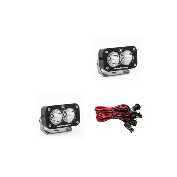 Two is always better than one, right? We think so, which is why were offering a pair of S2 Pro LED auxiliary lights with wiring harness. The S2 Pro LED Light offers an incredible 2,450 lumens out of a tiny 3 x 2in housing. The S2 Pro is quite literally the brightest LED light ounce for ounce on the market. The S2 Pro can be mounted where traditional lights would never fit.Moreover, it only draws 20 watts so your electrical system will barely know its there. This LED is perfect for all your adventures! Baja Designs Features:uService Replaceable Lenses And OpticsClearView All The Light, Right Where You Need It.MoistureBlock Waterproof, Rain Proof, SubmersibleCopperDrive Only LED Driven At 100 percent5000K Daylight Less Driver Fatigue, Natural ColorSpecifications, per light:Lumens: 2,450 Utilizing 2 LEDsWattage/Amps: 20W / 1.66ADimensions: 2.93 x 1.76 x 1.68inWeight: 8 ouncesLED Life Expectancy: 49,930 HoursFront Lens: Hard Coated PolycarbonateHousing: Hard Anodized and Powder Coated Cast AluminumBezel: Billet Machined AluminumHardware and Bracket Material: Stainless SteelExceeds MIL-STD810G, Mil-Spec TestingBuilt-In Overvoltage ProtectionIP69K, Waterproof, Submersible to 9ftIK10 Compliant, Mechanical Impact TestingIncludes: 2, S2 Pro LED Lights Mounting Bracket Wiring Harness