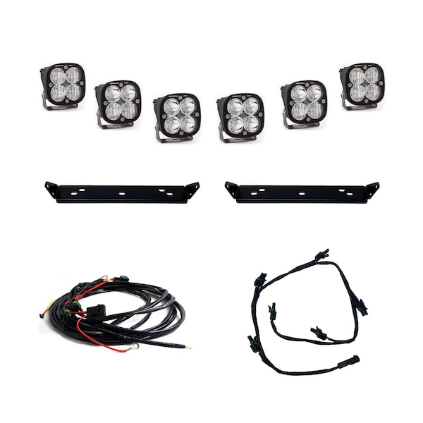 Baja Designs 2021 Ford Raptor Behind the Grill kits were designed with both functionality and visual appeal in mind. This kit offers six Squadron Pros, mounting brackets, and hardware.To give these kits and easier wiring installation each kit includes an up-fitter harness that will allow you to tap your lights into the factory up-fitter switches.Baja Designs Features:uService Replaceable Lenses And OpticsClearViewAll The Light, Right Where You Need It.MoistureBlock Waterproof, Rain Proof, SubmersibleCopperDrive Only LED Driven At 100 percent5000K Daylight Less Driver Fatigue, Natural ColorSpecifications, per light:Lumens: 4,600 Utilizing 2 types of Cree LEDsWattage/Amps: 40W / 2.90ADimensions: 3..07in x 2.77in x 3.07inWeight: 12 ouncesLED Life Expectancy: 49,930 HoursFront Lens: Hard Coated PolycarbonateHousing: Hard Anodized and Powder Coated Cast AluminumBezel: Billet Machined AluminumHardware and Bracket Material: Stainless SteelExceeds MIL-STD810G, Mil-Spec TestingBuilt-In Overvoltage ProtectionIP69K, Waterproof, Submersible to 9ftIK10 Compliant, Mechanical Impact TestingApplications:2021 Ford RaptorIncluded:x2 Squadron Pros in Wide Corneringx2 Squadron Pros in Driving Combox2 Squadron Pros in Spotx1 Upfitter harnessx2 Mounting BracketsAll necessary hardwarePatterns:Driving/Combo: Maximum trail coverage in a single light. The Driving/Combo pattern is equipped with both Driving, 42 Degree, and spot, 9 Degree, optics to provide you with a smooth blend of light for both near field applications and distance, Lighting Zone 3Wide Cornering: BD was the first to develop a pattern specifically for cornering, dust and/or fog conditions. The Wide Driving pattern offers a 42 Degree flattened horizontal beam for the ultimate in comfort lighting., Lighting Zones 1 and 2Spot: A longer and narrower 9 Degree beam focus for illumination further down the trail or road. The Spot pattern is designed to be used in conjunction with additional Wide Driving and/or Driving/Combo beam lights., Lighting Zone 4 and 5