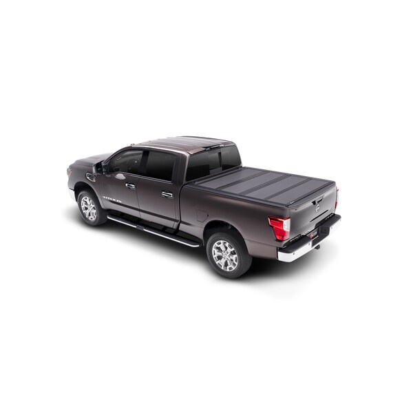 Hard Folding, 3 Folds/ 4 Panels, Front Hinge Allows Entire Tonneau to Flip Up When Folded, Lockable Using Tailgate Handle Lock, Black Matte, Aluminum, Can Be Used With BAK Tool Box