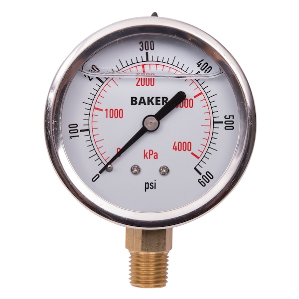 This pressure gauge has a stamped aluminum 2.5" diameter dial and polished stainless steel case. Its glycerine fill provides a dampening effect which minimizes pulsations.