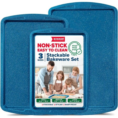 BAKKEN 3-Piece Nonstick Baking Pan Set, Carbon Steel, PFOA-Free, Oven Safe, 450 DegF, Blue Marble