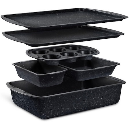 6-Piece Nonstick Gray Marble Bakeware Set, Carbon Steel, Silicone Handles, Oven and Freezer Safe