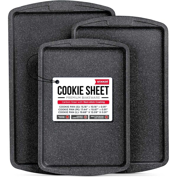 3-Piece Cookie Sheet Set, Non-Stick, Stackable, Gray Marble Ceramic Coating