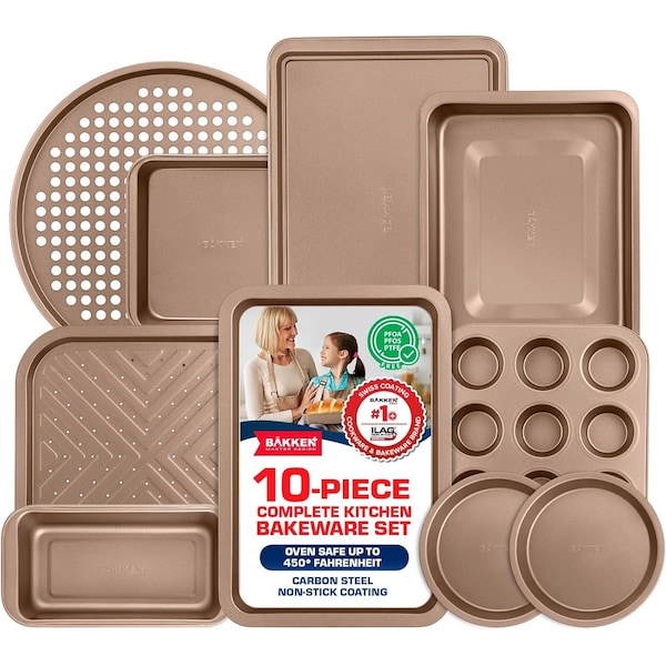 BAKKEN 10-Piece Nonstick Bakeware Set, Carbon Steel, Stackable, PFOA-Free, Brown