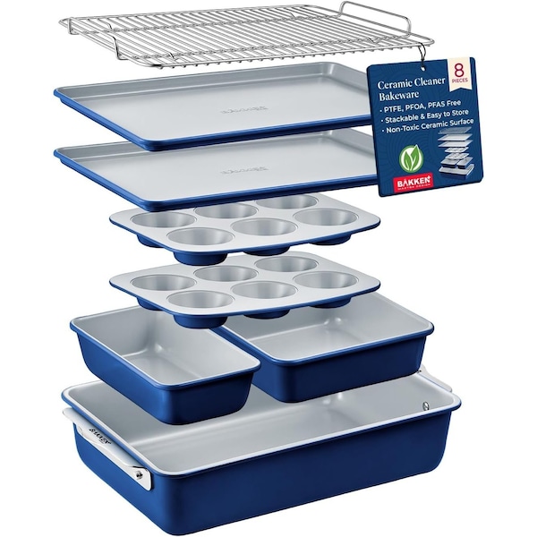 Bakken 8-Piece Stackable Bakeware Set, Ceramic Non-Stick, PTFE, PFOA and PFOS Free, Oven-Safe