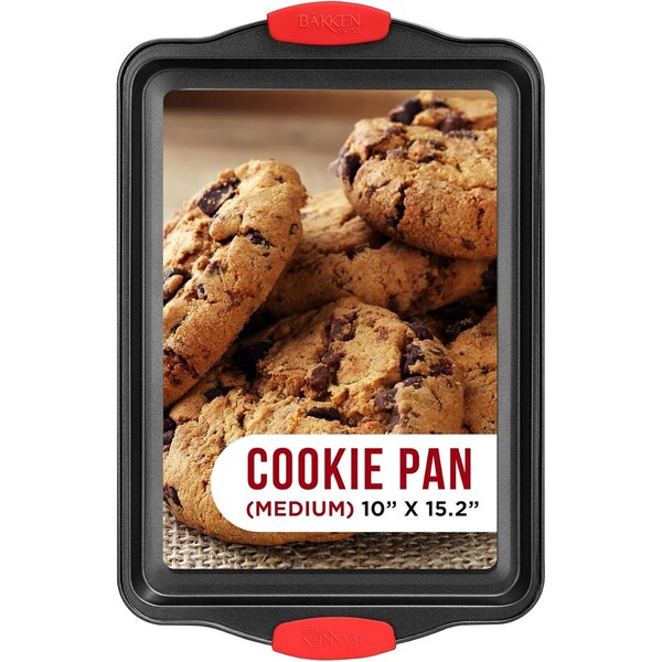 Medium Nonstick Cookie Sheet, Carbon Steel w/ Gray Coating, Red Silicone Handles, Oven Safe