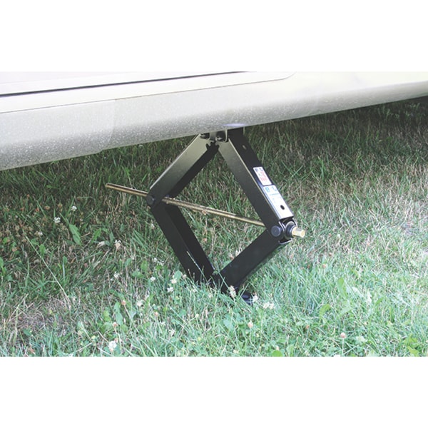 All steel construction. Each jack includes a 5" x 8" steel base plate and frame mounting plate. The crank turns easily due to a thrust ball bearing located at the junction of the drive screw and primary trunion. The entire jack is zinc plated and the handle is chromed. One model will fit most RVs regardless of the ground to frame clearance because it can extend from 4-3/4" to 24-3/16". Set of 2 jacks with 1 crank.For stabilizing and leveling purpose only. Never use for lifting, changing tires or supporting weight of any vehicles.