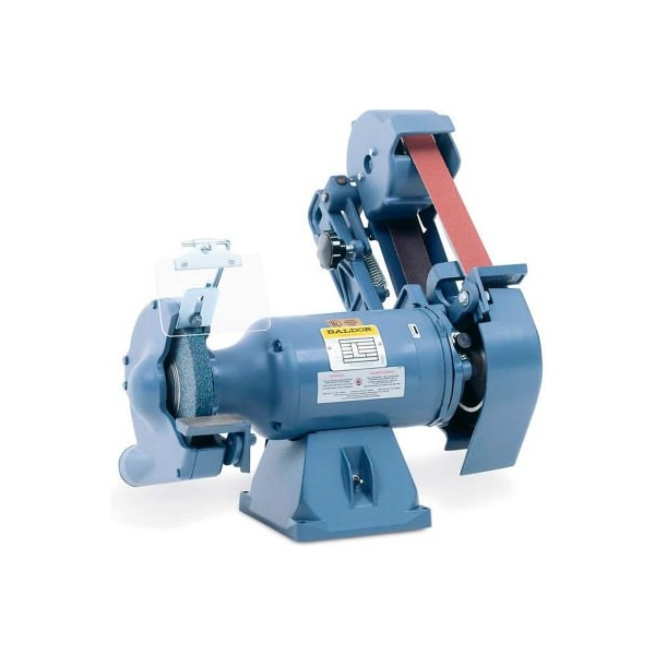 Baldor-reliance stationary grinder/buffer - spec 35h714-82 combination belt sander and grinder. 1-1/2 horsepower. 3600 rpm. Belt size: 2 x 48 - 80 grit. Single and three phase.