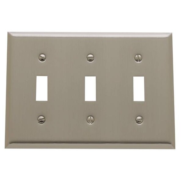 Beveled Edge Triple Toggle Switch Plate, Number of Gangs: 3 Brass, Satin Nickel Finish (Discontinued)