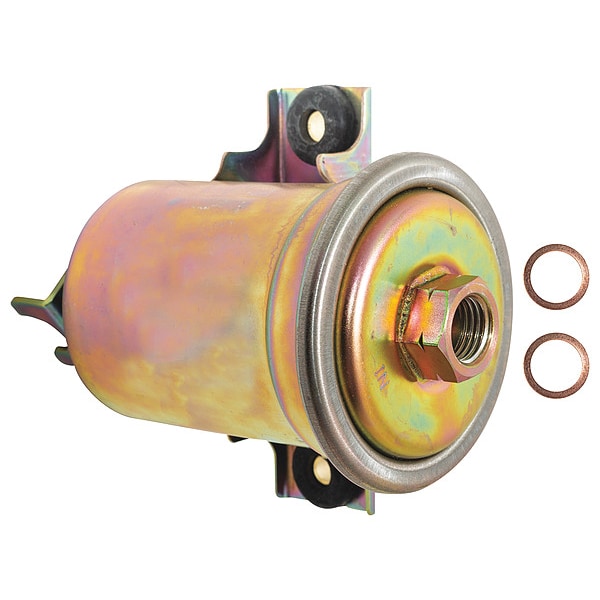 Fuel Filter, Filter Fuel Type Biodiesel, Diesel, Filter Design In-Line, In-Line Fuel Filter, Length 4 3/16 in, Inlet M14 x 1.5, Outlet M12 x 1.25, Outside Dia. 2 3/4 in, Includes (2) Copper Washers
