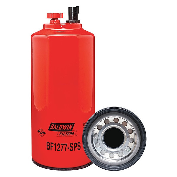 Fuel Filter, Filter Design Spin-On, Fuel/Water Separator Spin-On with Drain, Sensor Port and Reusable Sensor, Micron Rating 25 micron, Height 11 5/8 in, Length 11 5/8 in, Width 4 21/32 in, Outside Dia. 4 21/32 in, Includes Integral Gasket, M14 x 2.0 Thread Sensor Port, Thread Size M85 x 2.0