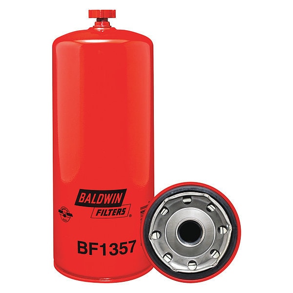 Fuel Filter, Filter Design Spin-On, Fuel/Water Separator Spin-On with Drain, Micron Rating 9 micron, Height 12 3/32 in, Length 12 3/32 in, Width 4 11/16 in, Outside Dia. 4 11/16 in, Includes Integral Gasket, Integral Post Seal, Thread Size 1 1/4 In.-12