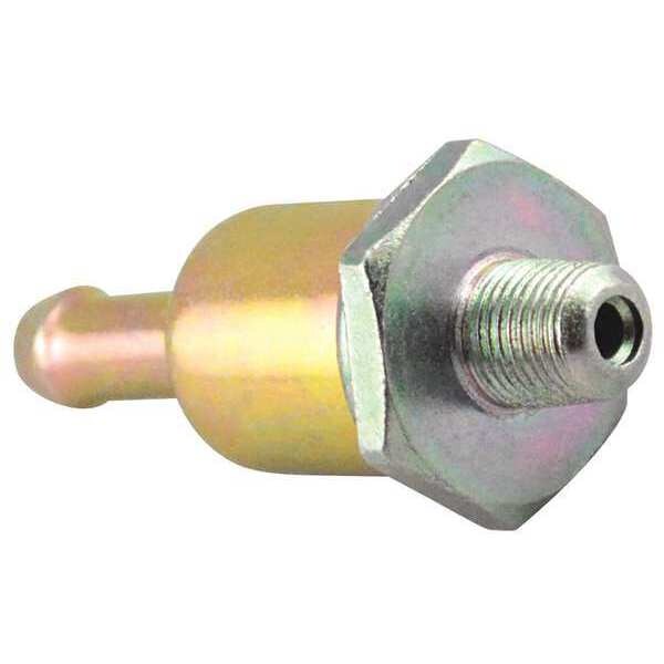 Fuel Filter, Filter Design Cartridge, Nylon Screen Screw-in Carburetor Fuel Filter, Height 2 15/32 in, Length 2 15/32 in, Width 1 11/32 in, Inlet 5/16 in, Outlet 1/8 In.-27, Outside Dia. 1 11/32 in