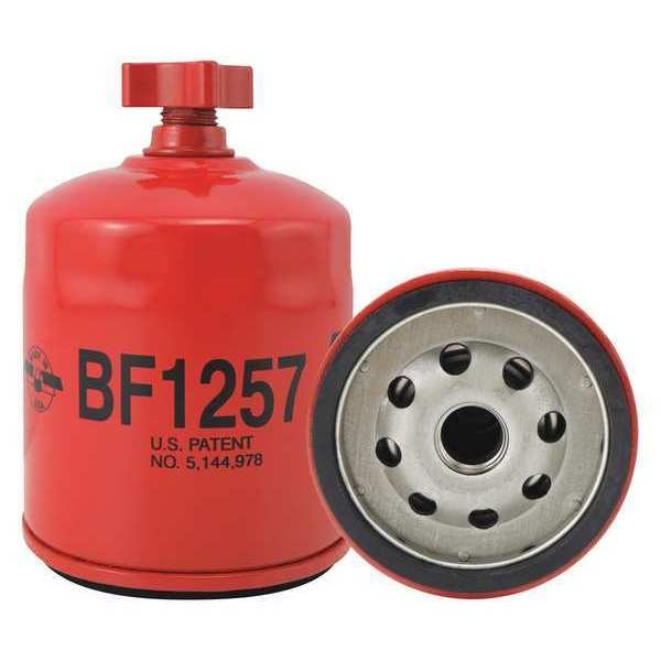Fuel Filter, Filter Design Spin-On, Fuel/Water Separator Spin-On with Drain, Micron Rating 20 micron, Height 4 7/32 in, Length 4 7/32 in, Width 3 in, Outside Dia. 3 in, Includes G449-B Integral Gasket, Integral Post Seal, Thread Size M16-1.50