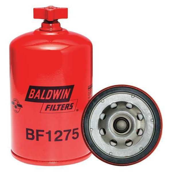Fuel Filter, Filter Design Spin-On, Fuel/Water Separator Spin-On with Drain, Micron Rating 20 micron, Height 5 11/16 in, Length 5 11/16 in, Width 3 1/32 in, Outside Dia. 3 1/32 in, Includes G449-B Integral Gasket, Integral Post Seal, Thread Size 3/4 In.-16