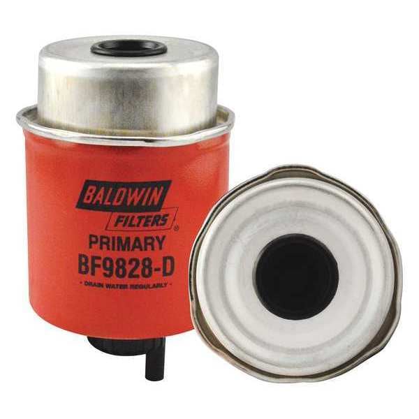 Fuel Filter, Filter Design Cartridge, Primary Fuel/Water Separator Element with Removable Drain, Height 5 9/32 in, Length 5 9/32 in, Width 3 7/32 in, Outside Dia. 3 7/32 in, Inside Dia. 1/2 in, Includes Attached Grommet, Thread Size Not Applicable