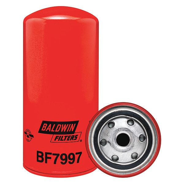 Fuel Filter, Filter Design Spin-On, Fuel Spin-On, Micron Rating 4 micron, Height 8 5/32 in, Length 8 5/32 in, Width 3 23/32 in, Outside Dia. 3 23/32 in, Includes Integral Gasket, Thread Size M18-1.50