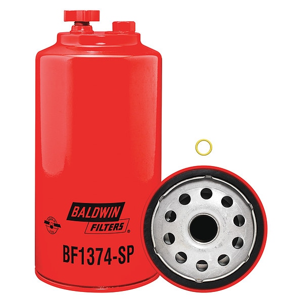 Fuel Filter, Filter Design Spin-On, Fuel/Water Separator Spin-On with Drain and Sensor Port, Micron Rating 10 micron, Height 9 7/32 in, Length 9 7/32 in, Width 4 1/4 in, Outside Dia. 4 1/4 in, Includes 9/16-18 Sensor Port Thread, Integral Gasket, Thread Size 1 In.-14