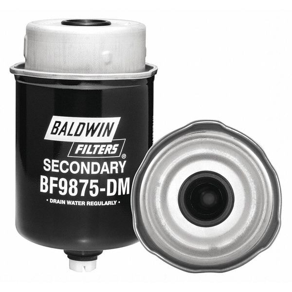Fuel Filter, Filter Design Cartridge, Secondary Fuel/Water Separator Element, Height 5 5/16 in, Length 5 5/16 in, Width 3 5/32 in, Outside Dia. 3 5/32 in, Inside Dia. 15/16 in, Includes Attached Grommet, Drain Nut, Thread Size Not Applicable