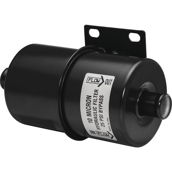 Hydraulic Filter, Filter Design In-Line, Maximum Performance Glass In-Line Hydraulic Filter, Micron Rating 17, Height 7 31/32 in, Length 7 31/32 in, Width 4 1/32 in, Inlet 1 In., Outlet 1 In., Outside Dia. 4 1/32 in, Includes 25 psid Bypass Valve, Mounting Bracket, For Use With Hyster Lift Trucks, Thread Size Not Applicable
