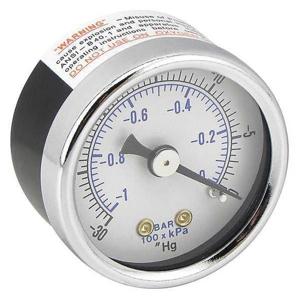 Vacuum Gauge, For Use With 3-5 psi Bypass Filter Base, Features 0-30 Gauge, Mounts Directly to Base with 1/8 in NPT