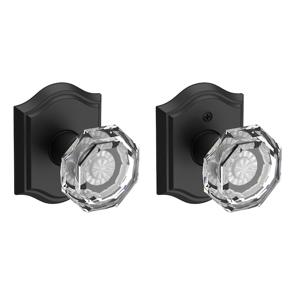 Passage Crystal Knob with Traditional Arch Rose with 6AL Latch and Dual Strike Satin Black Finish