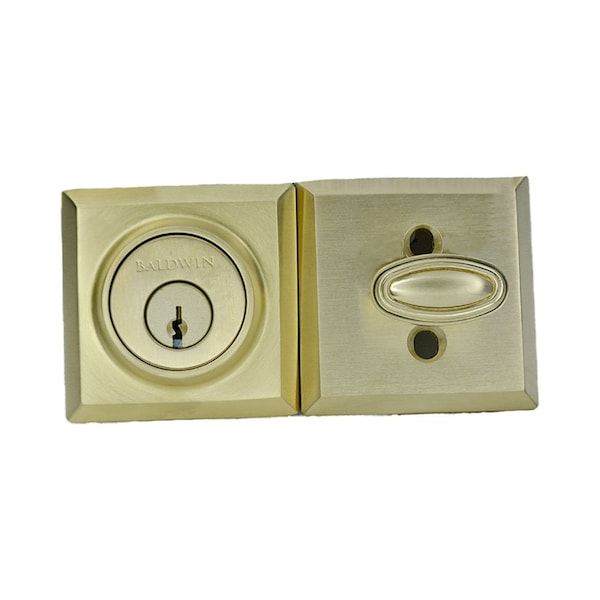 The Reserve portfolio is for people who want more. Theyre looking for more ways to express themselves with the distinctive look of Baldwin and find value in a company with more years of experience and a bona fide commitment to greater quality. Far beyond just a lock in a box, Reserve opens the door to a customizable world flowing with inspiration. And its all ready to go whenever inspiration strikes because its ready to ship in just 5-7 days. Reserve is the best of both worlds: accessibility and artful appeal. Make a lasting impression with Reserve.. Single Cylinder Traditional Square Deadbolt with 6AL Latch and Dual Strike Lifetime Satin Brass Finish