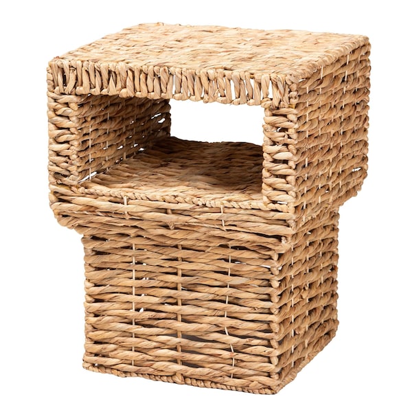 Supplement the cozy nature of your space with the serene, exotic poise of the Raziel end table. Made in Vietnam, this bohemian piece consists of a sturdy wood frame wrapped in beautifully woven seagrass. Its square tabletop serves as an ideal accessory for daily use, while the open shelf adeptly organizes common items. The Raziel will arrive fully assembled and it is recommended to be used with a fitted glass tabletop for proper maintenance. With a modest yet eye-catching design, the Raziel is sure to find its place in any layout. Glass tabletop not included.