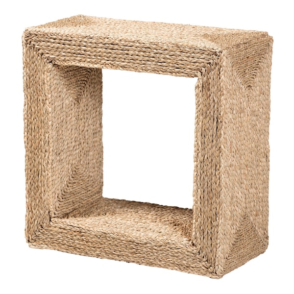 Elevate the presentation of your space with the serene nature of the Adonica end table. Made in Vietnam, this bohemian piece consists of a sturdy wood frame wrapped in intricately woven seagrass. Its rectangular tabletop serves as a fantastic pedestal for decorations, while the open shelf assists in organizing and decluttering busy areas. The Adonica will arrive fully assembled and it is recommended to be used with a fitted glass tabletop for proper maintenance. Woven geometric embellishments distinguish the piece, making the Adonica end table a striking complement to any setting. Glass tabletop not included.