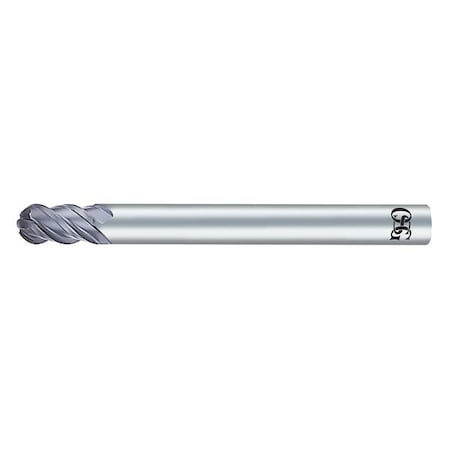 2.500 mm Cutter DIA x 3.700 mm Length of Cut Carbide Metric Ball End Mill, 4 Flutes, AlTiN Coated