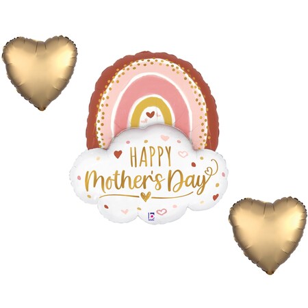Mother's Day Theme Balloon Set, 35 Inch Mother's Day Boho Rainbow Balloon, Heart Shape Foil Balloons