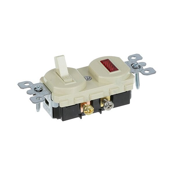 15A/125V, On/Off W/ Red Signal Light, 4 Screw Term, Spst,;Colr Ivory. 3-3/8" Mt Ctrs