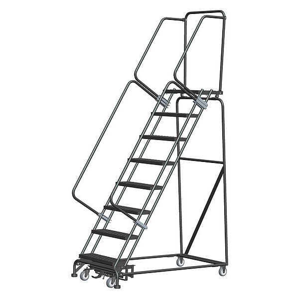 113 in H Steel Rolling Ladder, 8 Steps, 450 lb Load Capacity