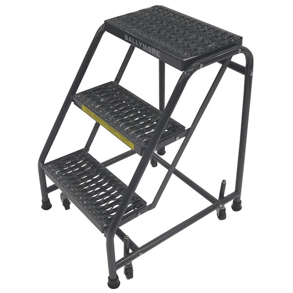 28 1/2 in H Steel Rolling Ladder, 3 Steps, 450 lb Load Capacity