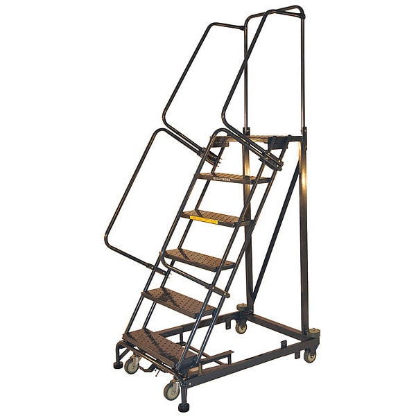 93 in H Steel Rolling Ladder, 6 Steps, 800 lb Load Capacity