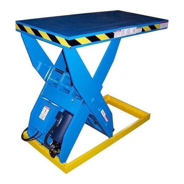 Scissor Lift Table, Platform Length 48 in, Platform Width 36 in, Maximum Load Capacity 3,300 lb, Minimum Lifting Height 7 1/4 in, Maximum Lifting Height 43 1/4 in, Up Speed Time 15 sec, Power Source Electric, Motor Horsepower 1 1/2 hp, Lift Control Foot Control, Lift Mechanism Hydraulic, Lift Table Platform Style Fixed, Operating Voltage 115V AC, Overall Length 48 in, Overall Width 36 in, Platform Material Steel, Frame Material Steel, Handle Type Ergonomic, Cord Length 10 ft