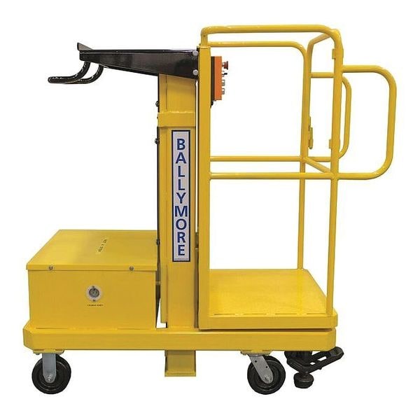 Mobile Personnel Lift, Drive No, Power Source Battery, Load Capacity 500 lb, Closed Height 4 ft 7 in, Max. Work Height 12 ft, Outrigger Footprint L No Outriggers, Outrigger Footprint W No Outriggers, Overall Length 48 in, Overall Width 26 in, Platform Depth 20 in, Platform Width 20 in, Max. Platform Height 5 ft 8 in, Handrail Height 3.5 ft, Stowed Height 4.6 ft, Casters Yes, Caster Dia. 6 in, Drive Wheel Yes, Tire Size 6 in, Ground Clearance 2 in, Batteries Included Yes, Series BMML