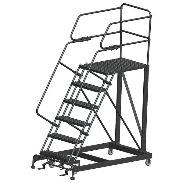 Single Access Rolling Platform, Material Steel, Platform Style Single Access, Platform Height 60 in, Load Capacity 800 lb, Base Depth 66 in, Bottom Width 38 in, Platform Depth 36 in, Platform Width 36 in, Overall Height 8 ft 3 in, Handrail Height 3 ft, Number of Guard Rails 3, Number of Legs 2, Number of Steps 6, Step Width 36 in, Step Depth 7 in, Climbing Angle 59 Degrees , Step Tread Serrated, Color Gray, Finish Powder Coated, Standards ANSI, OSHA Compliant, Includes Lockstep and Handrails