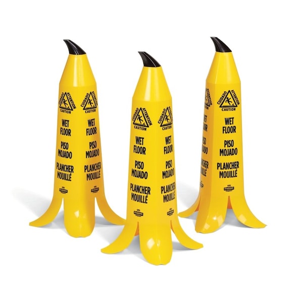 Caution Sign, Wet Floor, Banana Peel Cone, Plastic, 3 ftr Height, PK5